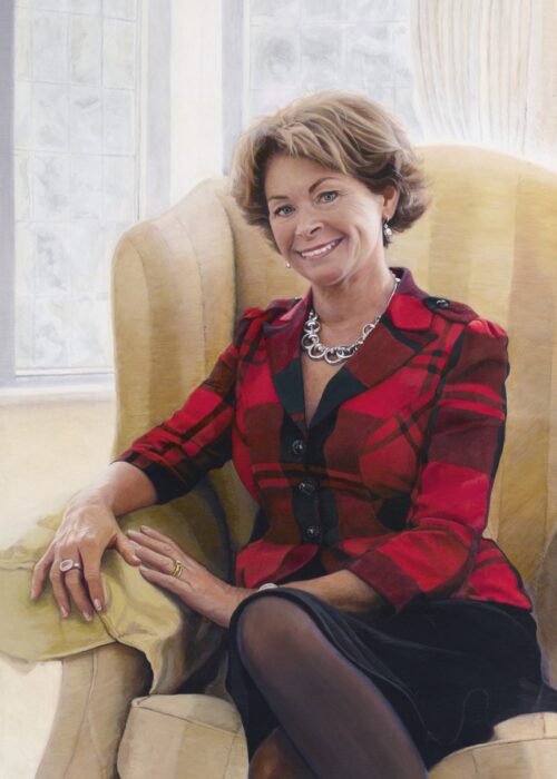 I am absolutely thrilled with the portrait. It combines the relaxed, friendly style I wanted with just enough gravitas. Most importantly, it is actually me! From the Governors, who commissioned it, to the girls at the school, the portrait has been greatly admired by everyone.