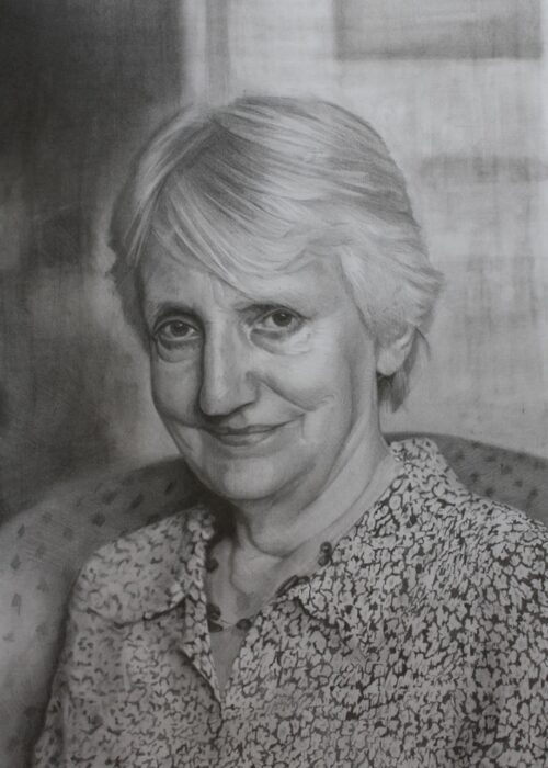 I can’t tell you how much I appreciate the way you approached the task. You were so economical with my time, and worked really quickly, while still managing to get to know me and put me at my ease. You were so wise in selecting the approach and the setting for the picture, and I also really appreciated the way you kept me updated and gave me the chance to comment. Above all it was lovely to get to know you and see how a portrait artist thinks and works: you made the whole experience great fun, and I am delighted with the final product.